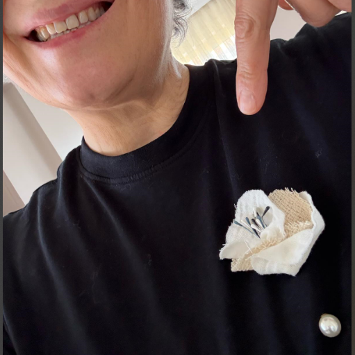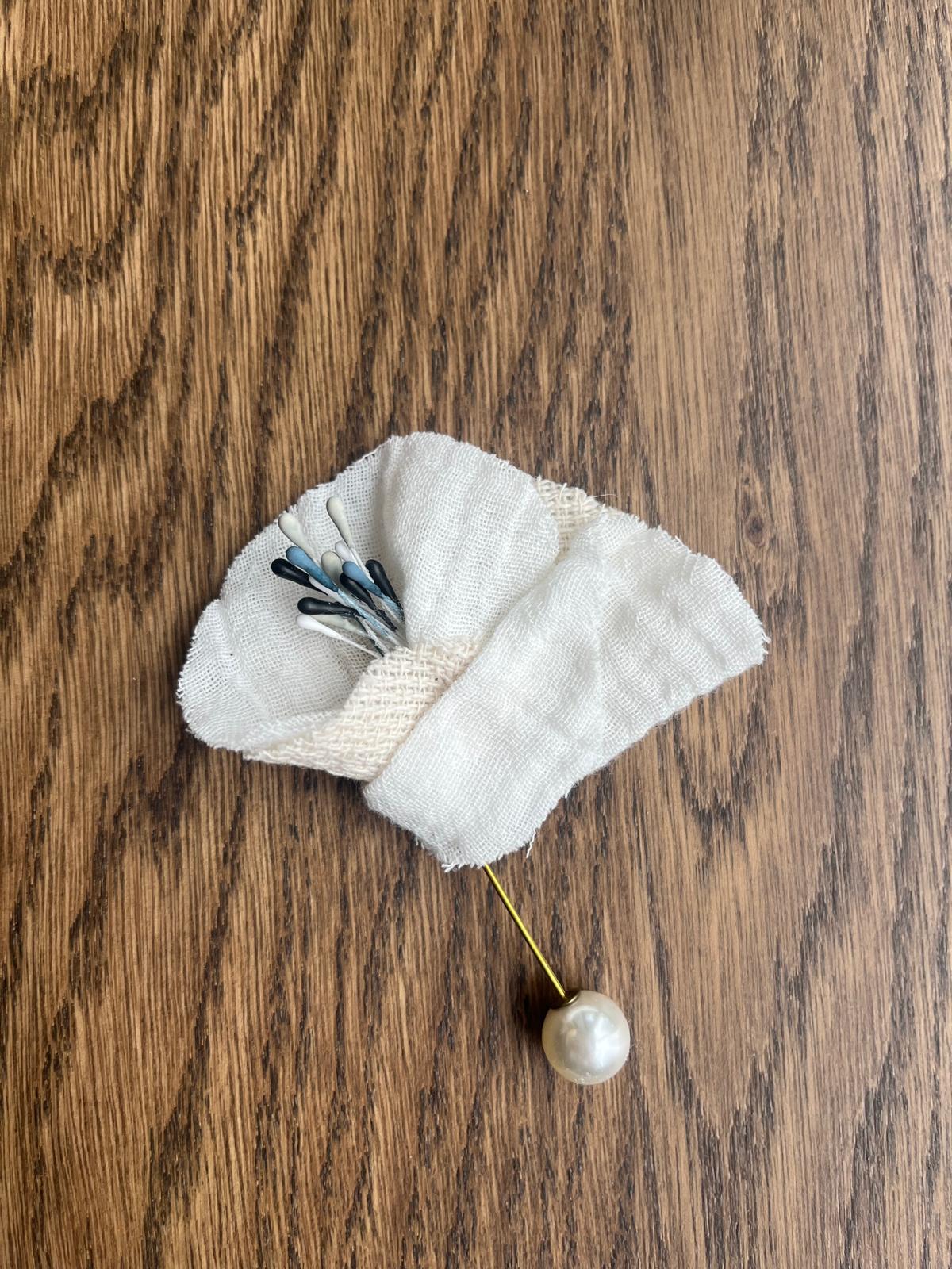 El Yapımı Keten Çiçek Broş