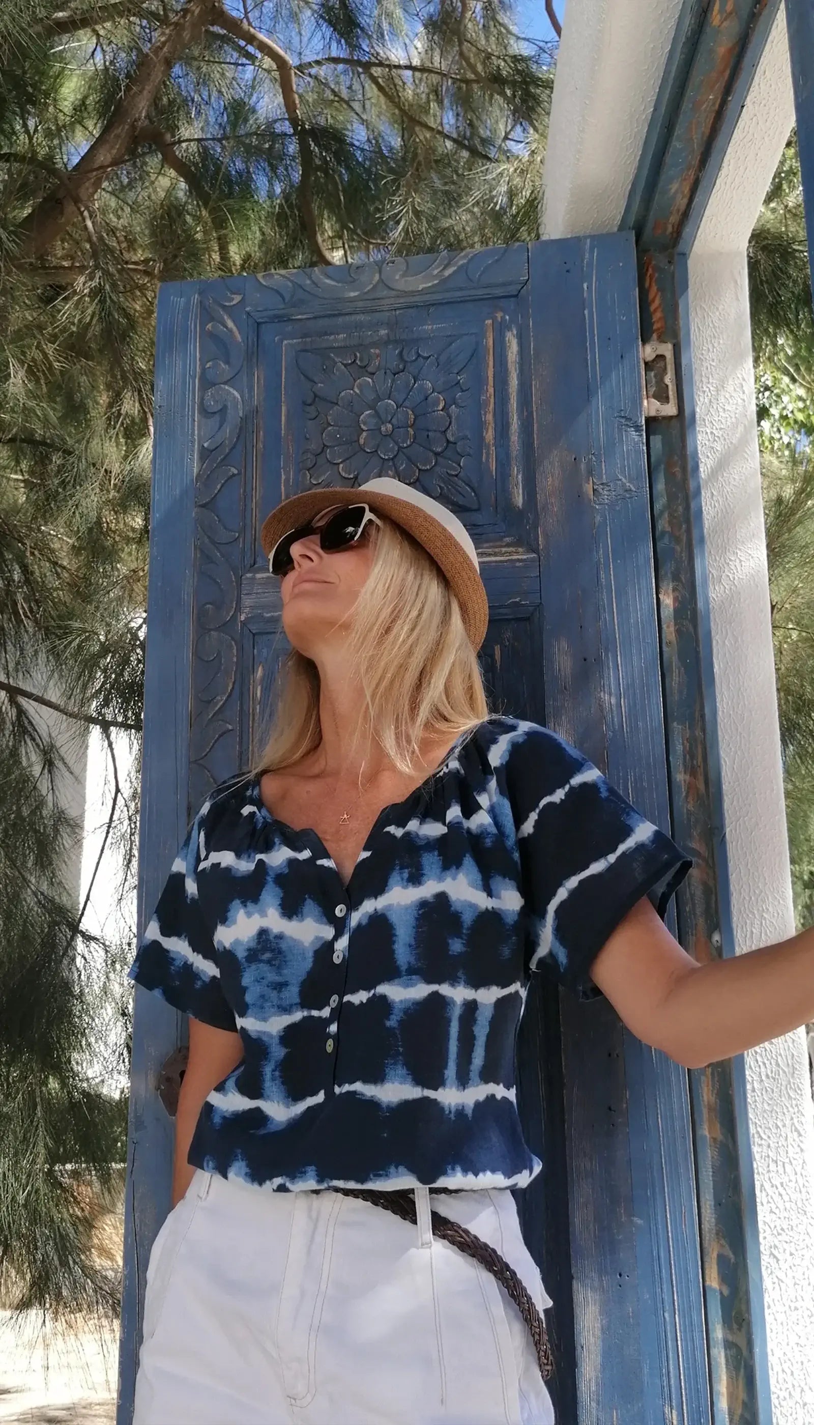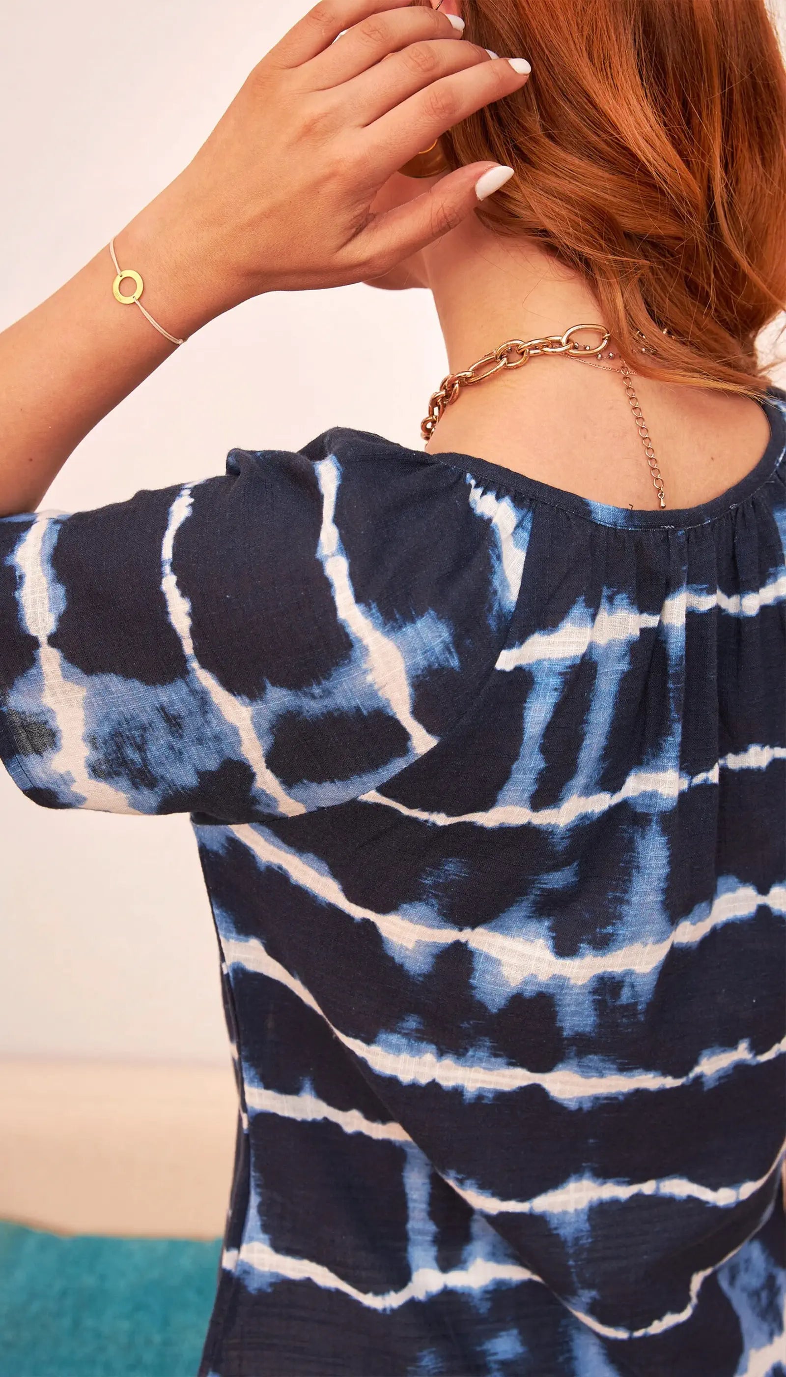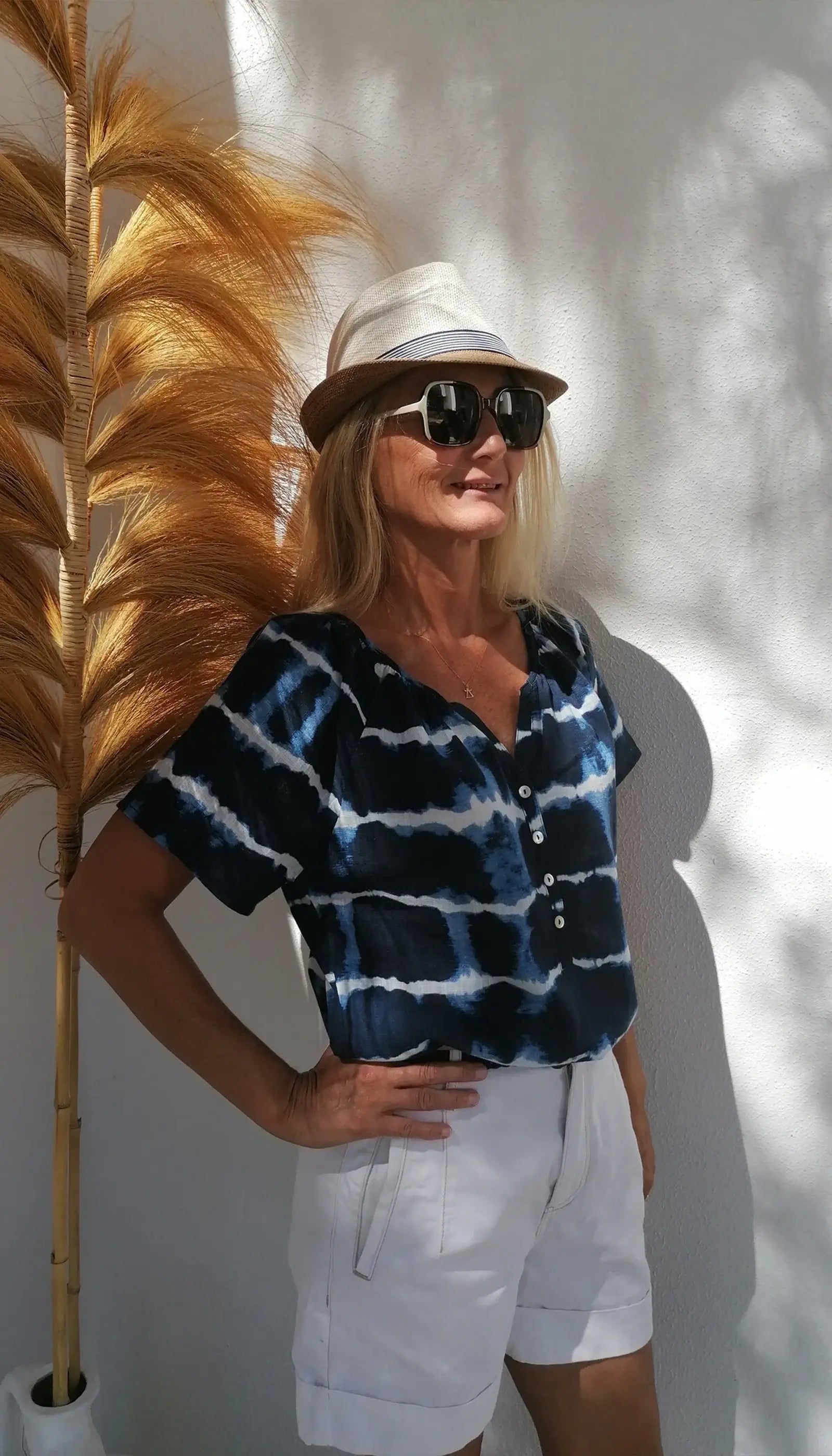 Batik pamuk kadın bluz; kot pantolonlar, şortlar, etekler veya pantolonlarla harika görünür. Gündüzden geceye kadar size eşlik edecek kadar çok yönlüdür ve her türlü durum için size şıklık kazandırır. Zamansız stili ve şıklığı ile bu bluz, gardırobunuzda kesinlikle değerli bir yer edinecektir.