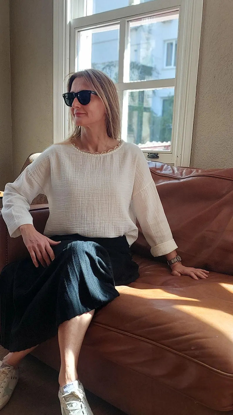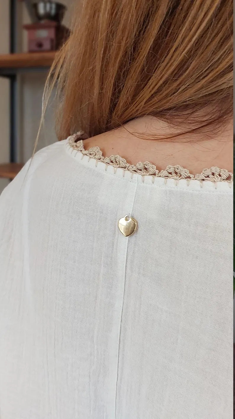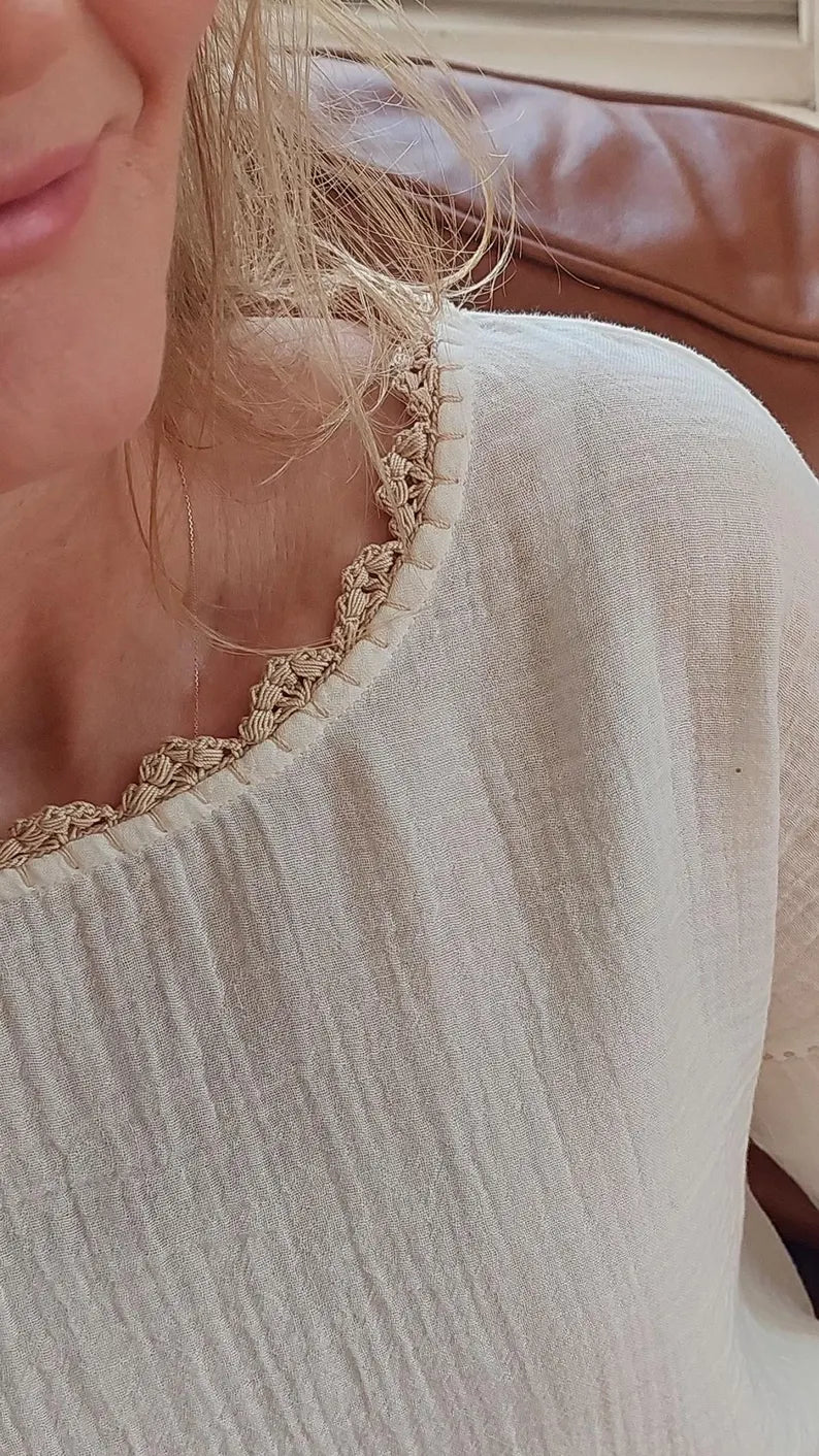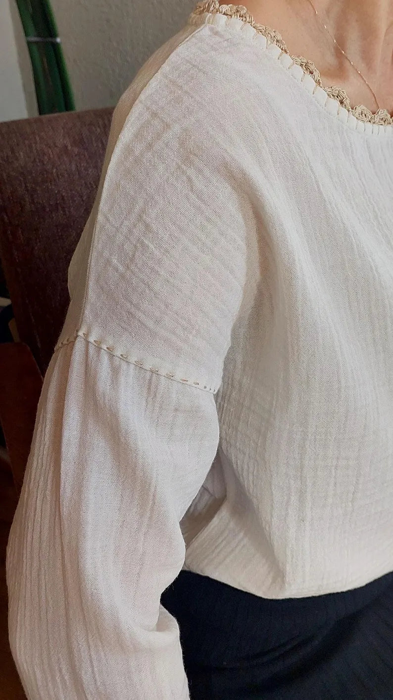 Dantel Süslemeli Yaka Detaylı Beyaz Müslin Bluz