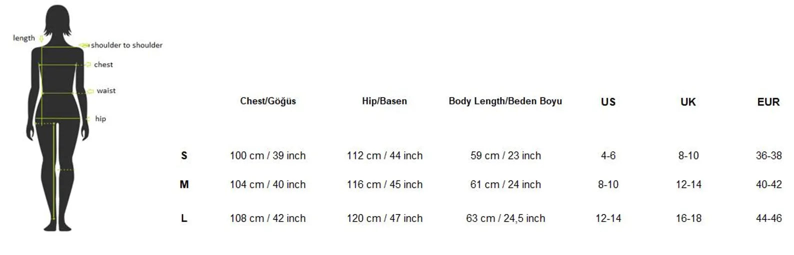 Mevcut bedenler: S / M / L