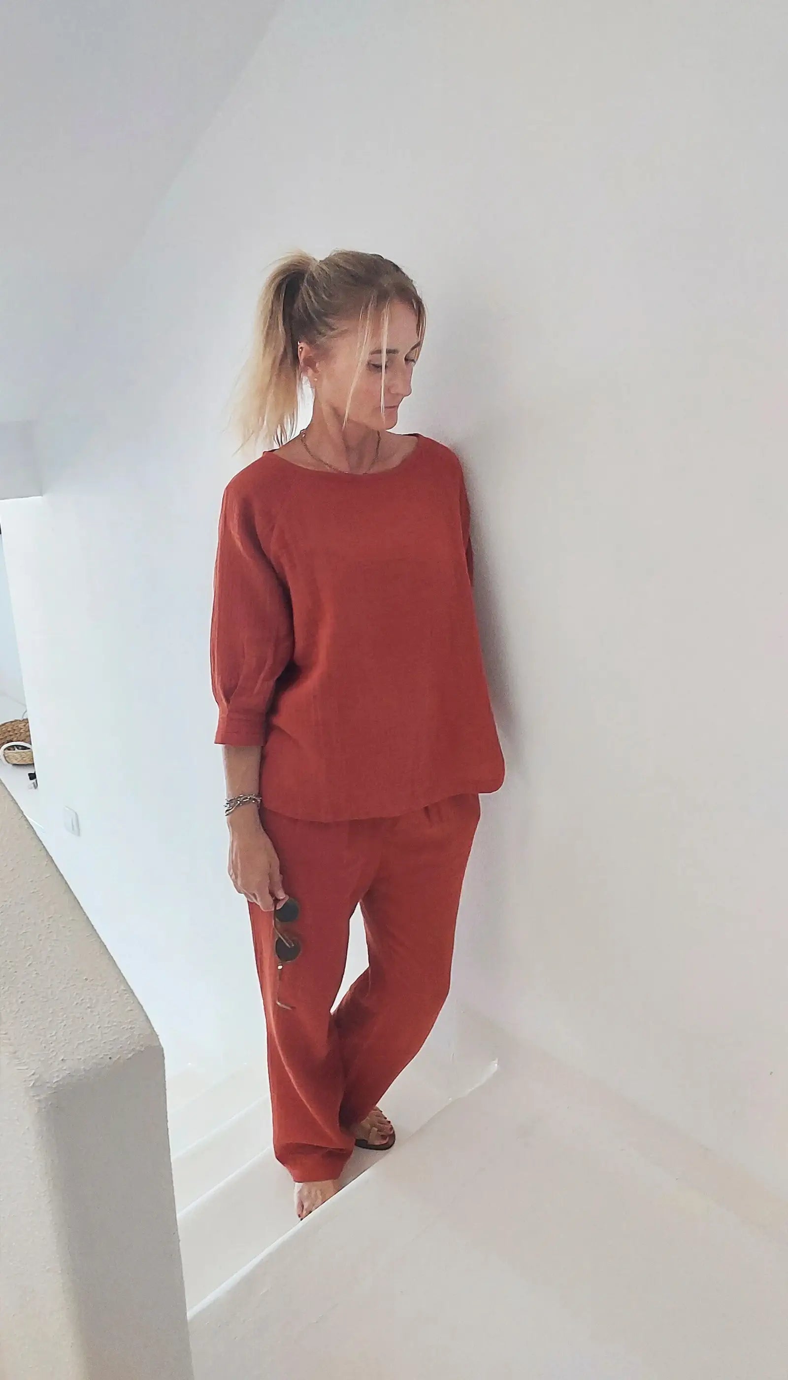 3/4 Kol Tarçın Kadın Müslin Bluz