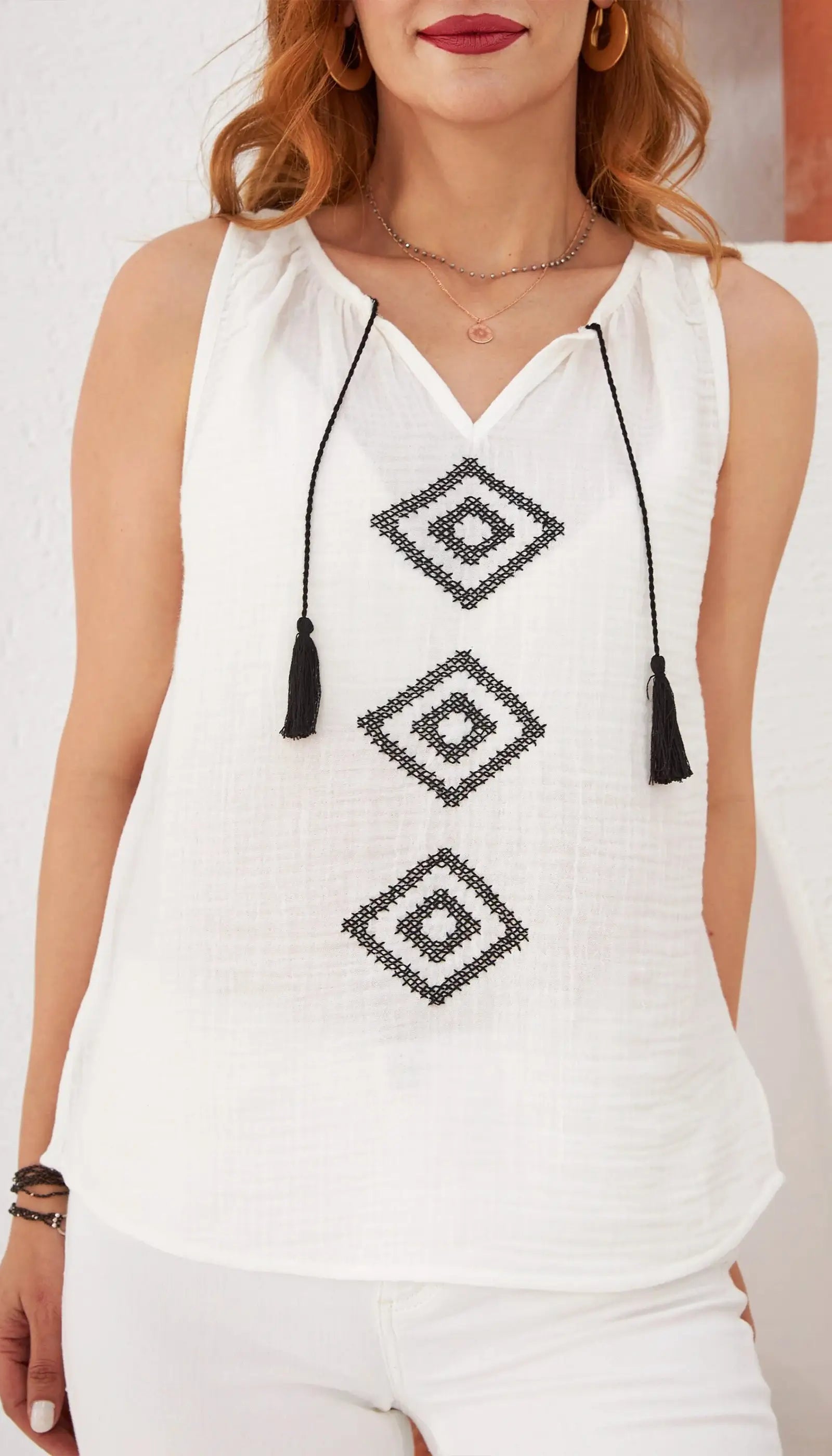 Special Hand Embroidered Sleeveless Blouse is suitable for daily use, casual, office, beach, school, home, street. This elegant long sleeve blouse top, which can regulate your body temperature with organic fibers of natural cotton muslin fabric, is perfect for spring, summer and autumn.