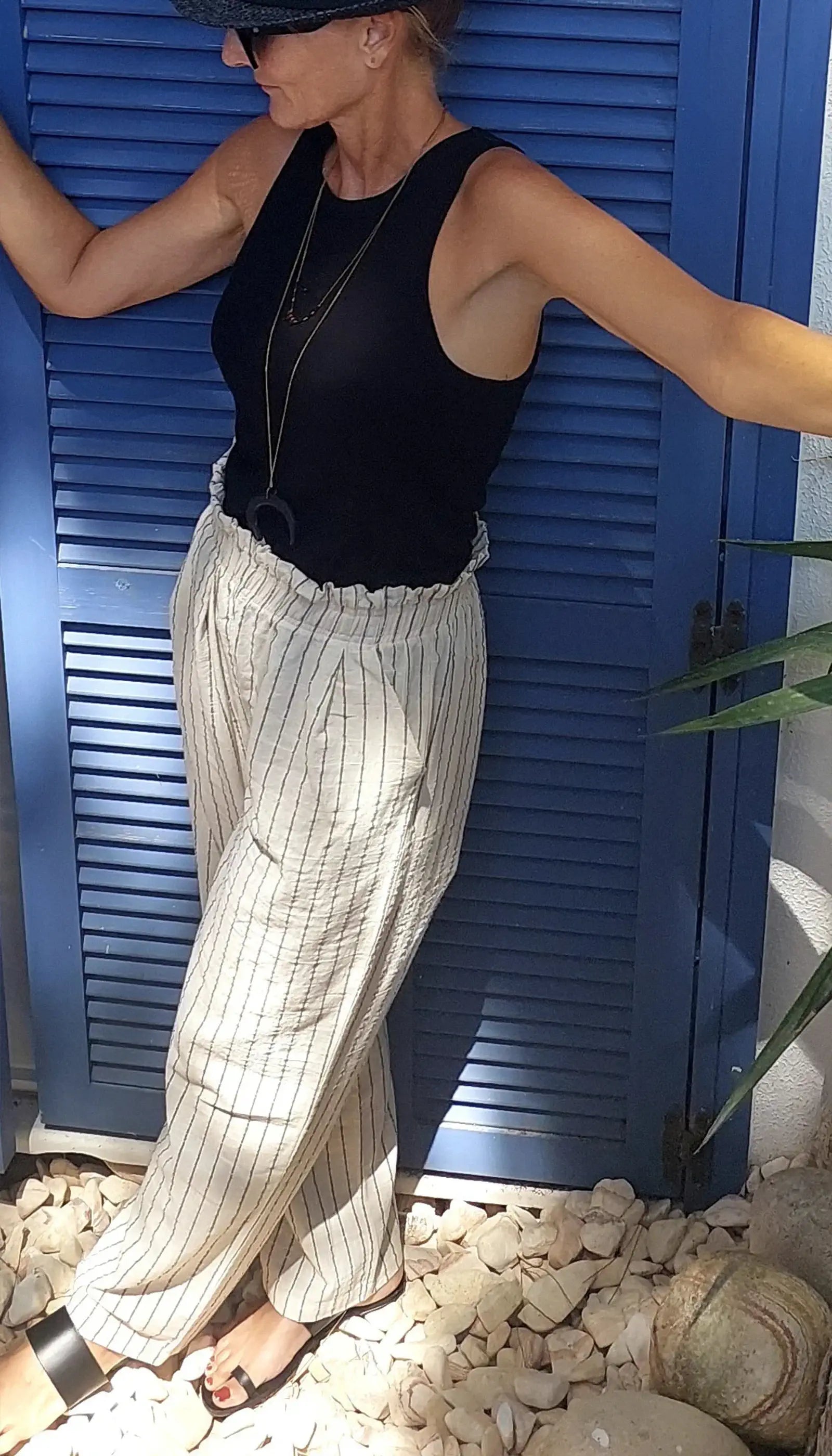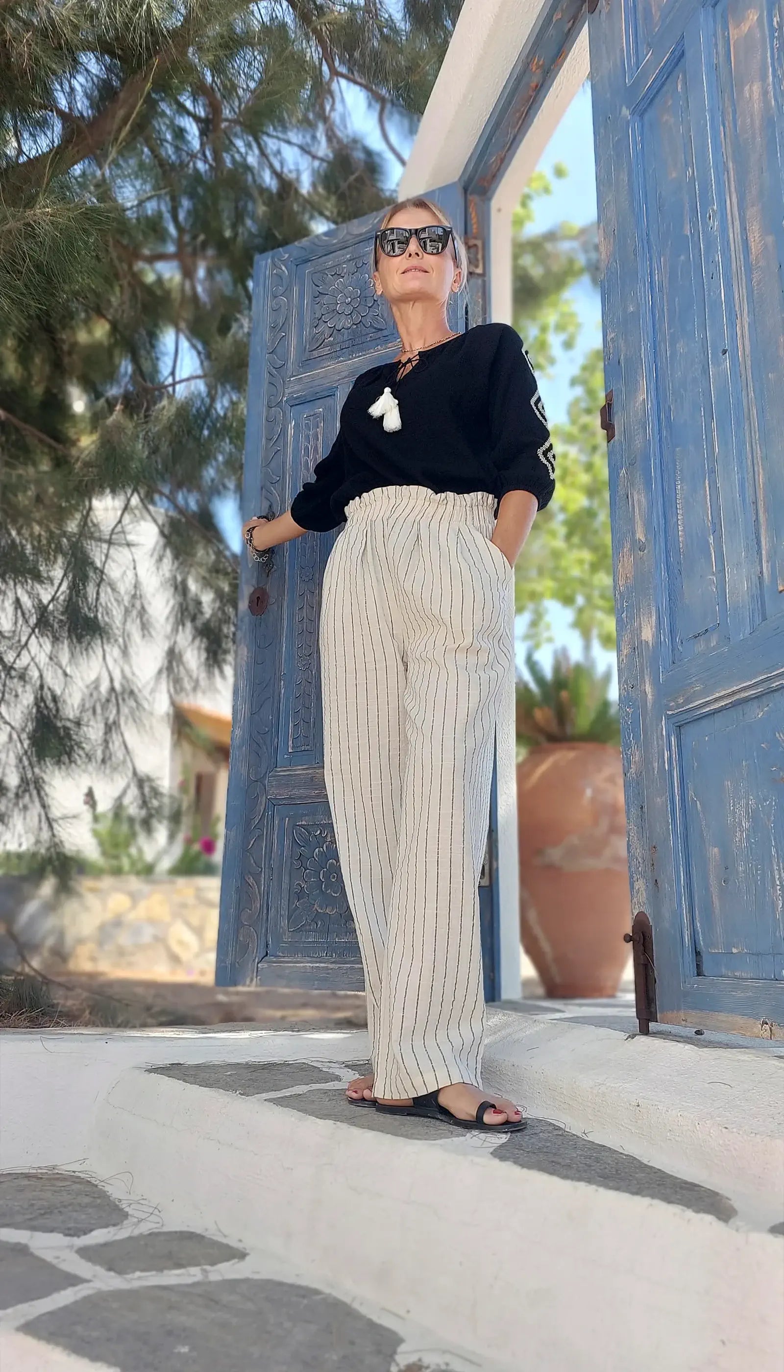 These trousers are made from 100% Linen fabric, promising an unparalleled softness and breathability experience. A chic trouser with a front detail that adds an extra touch of sophistication. But the real magic is in its versatility. Whether you’re in the mood for a pair of trousers for a sunny day or a classic pair for an elegant evening, we’ve got you covered. A timeless piece for every season, mood and body type. Also available in Burnt Orange Cotton Muslin and Black Cotton Muslin, let us know which one you prefer!