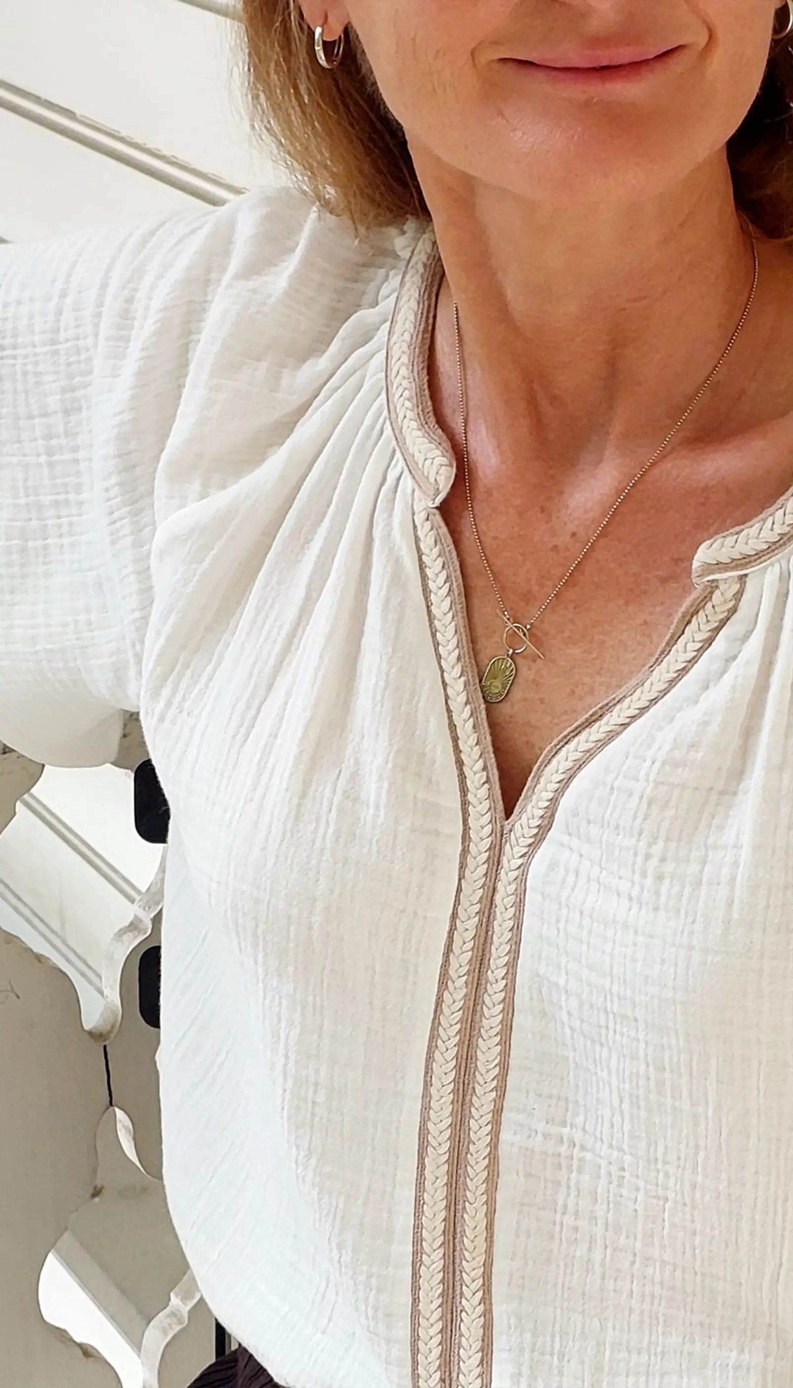baliksirti serit detayli beyaz muslin kadin bluz