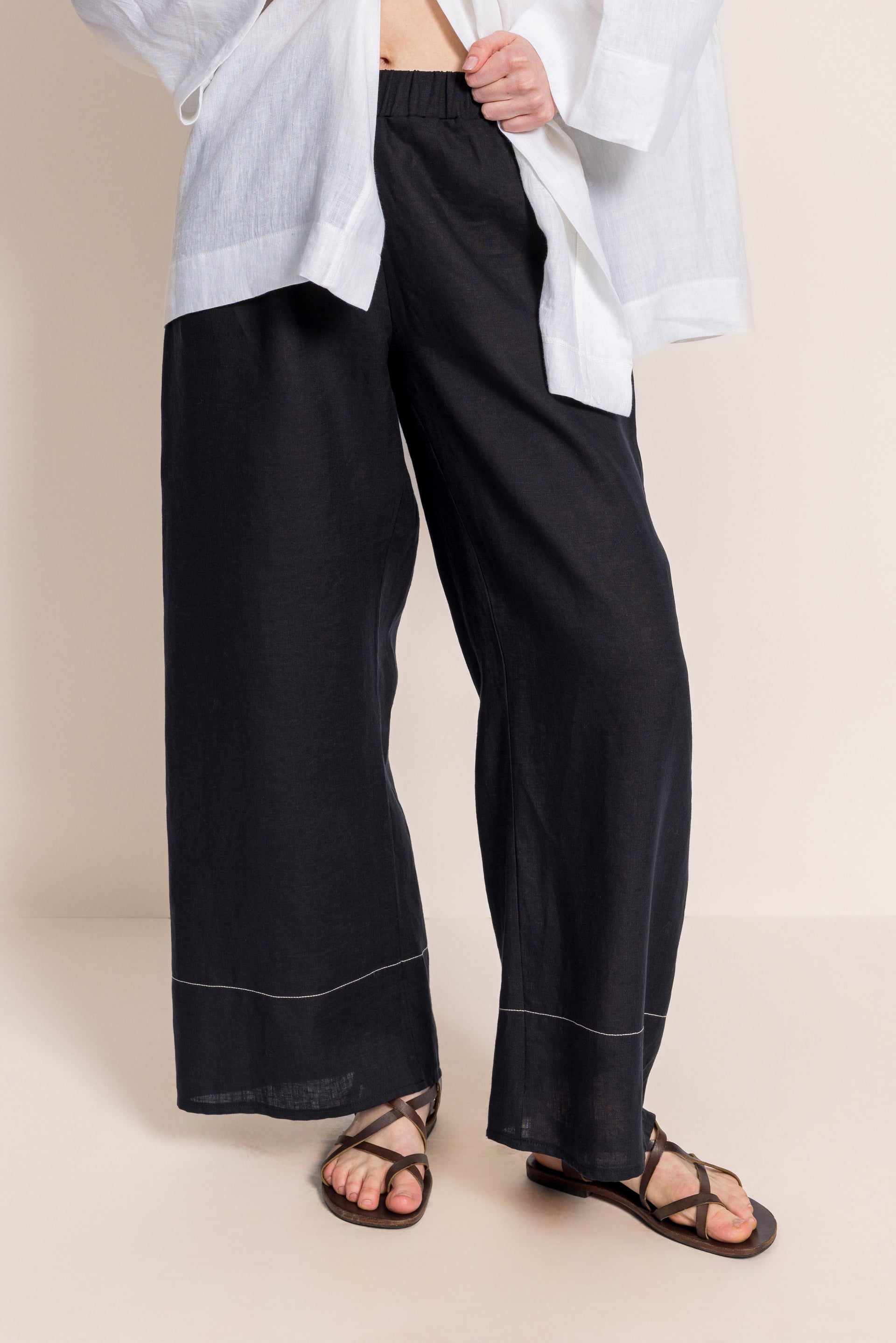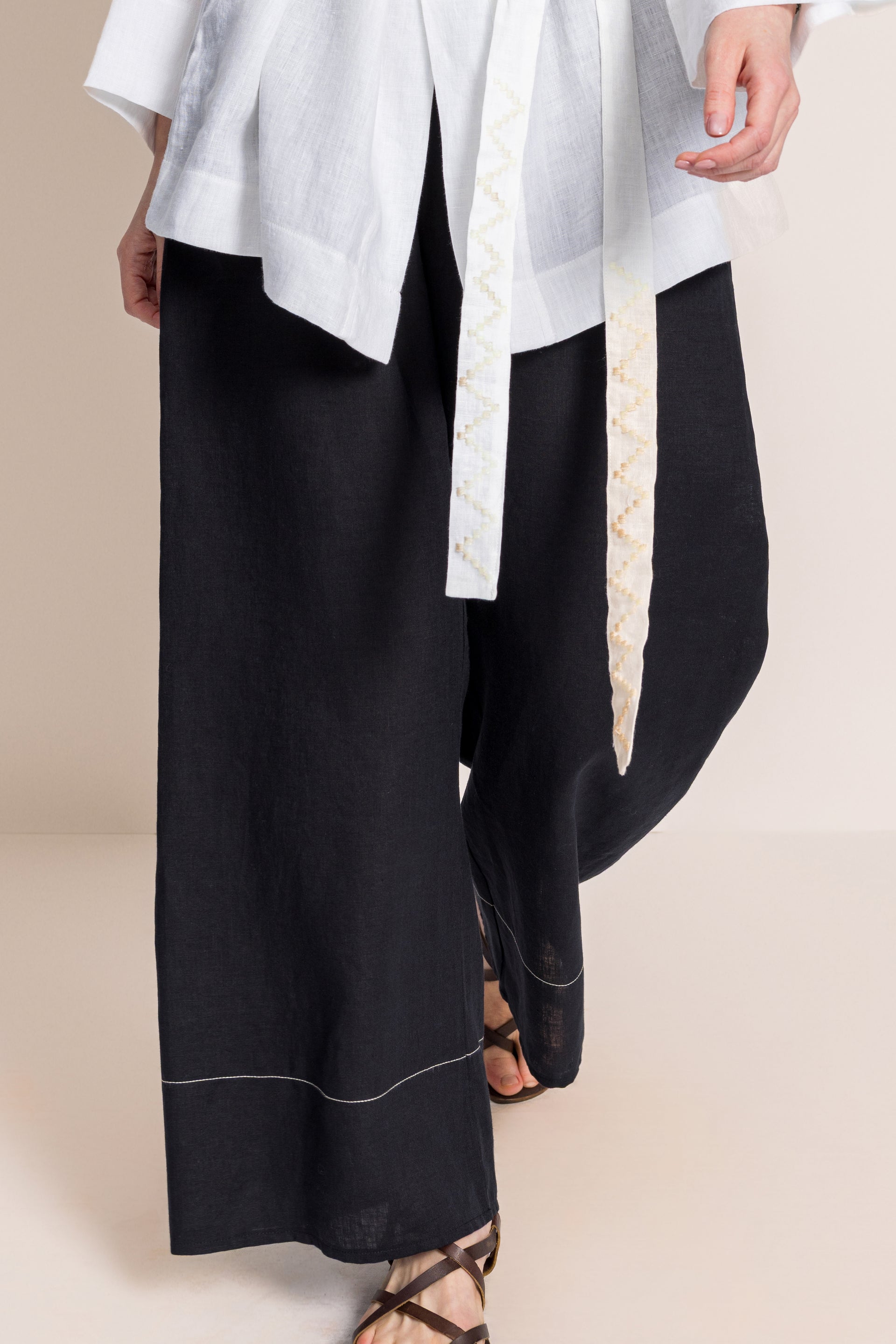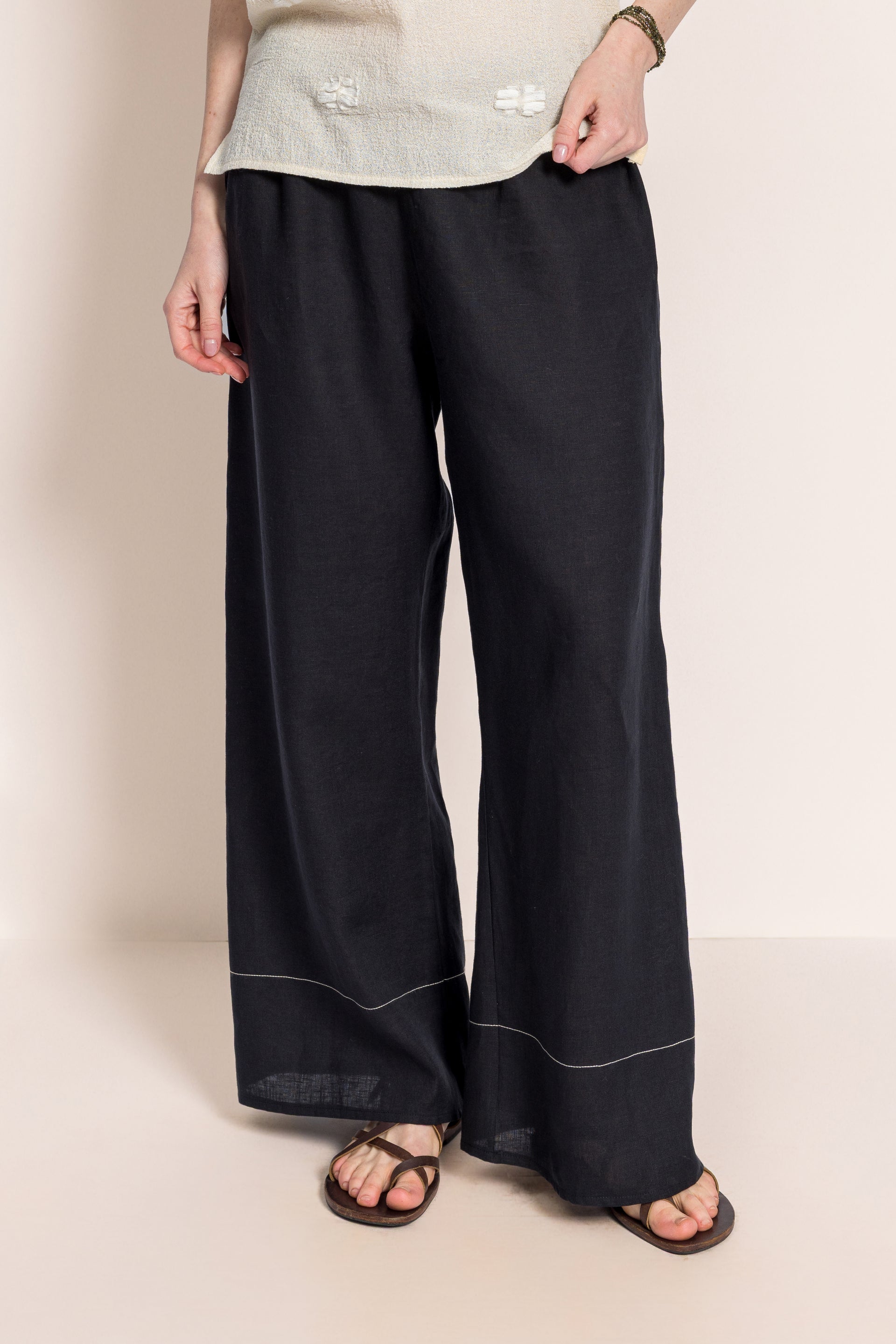 Baykuş Siyah Keten Pantolon
